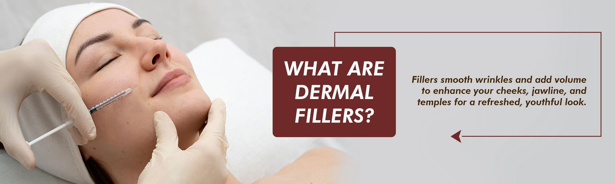 Dermal fillers are gel-like substances commonly made of hyaluronic acid. These fillers are injected under your skin to target specific facial areas, such as lips, cheeks, jawline, and under-eyes.